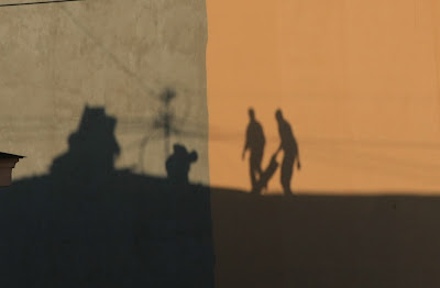 тени рабочих на стене